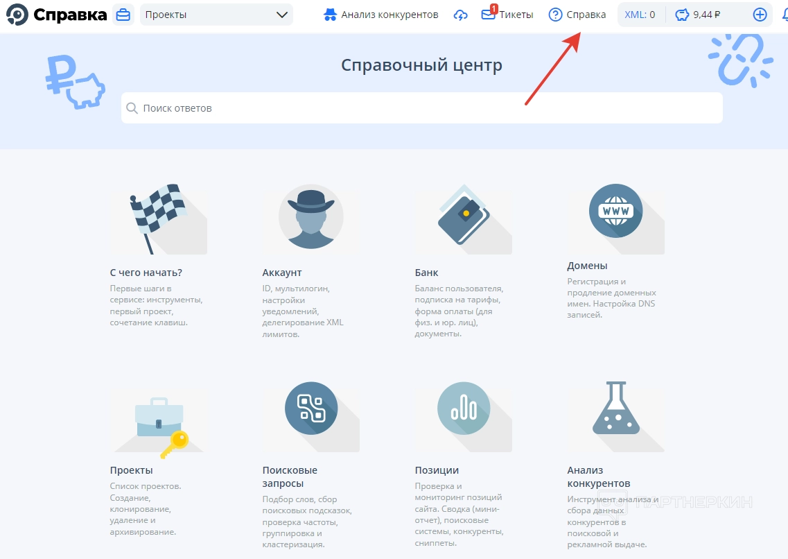 - Навигатор. С его помощью можно получить доступ к таким блокам, как «Справка», «API», «Журнал», «Академия», «Цены» и «Сокращатель ссылок».