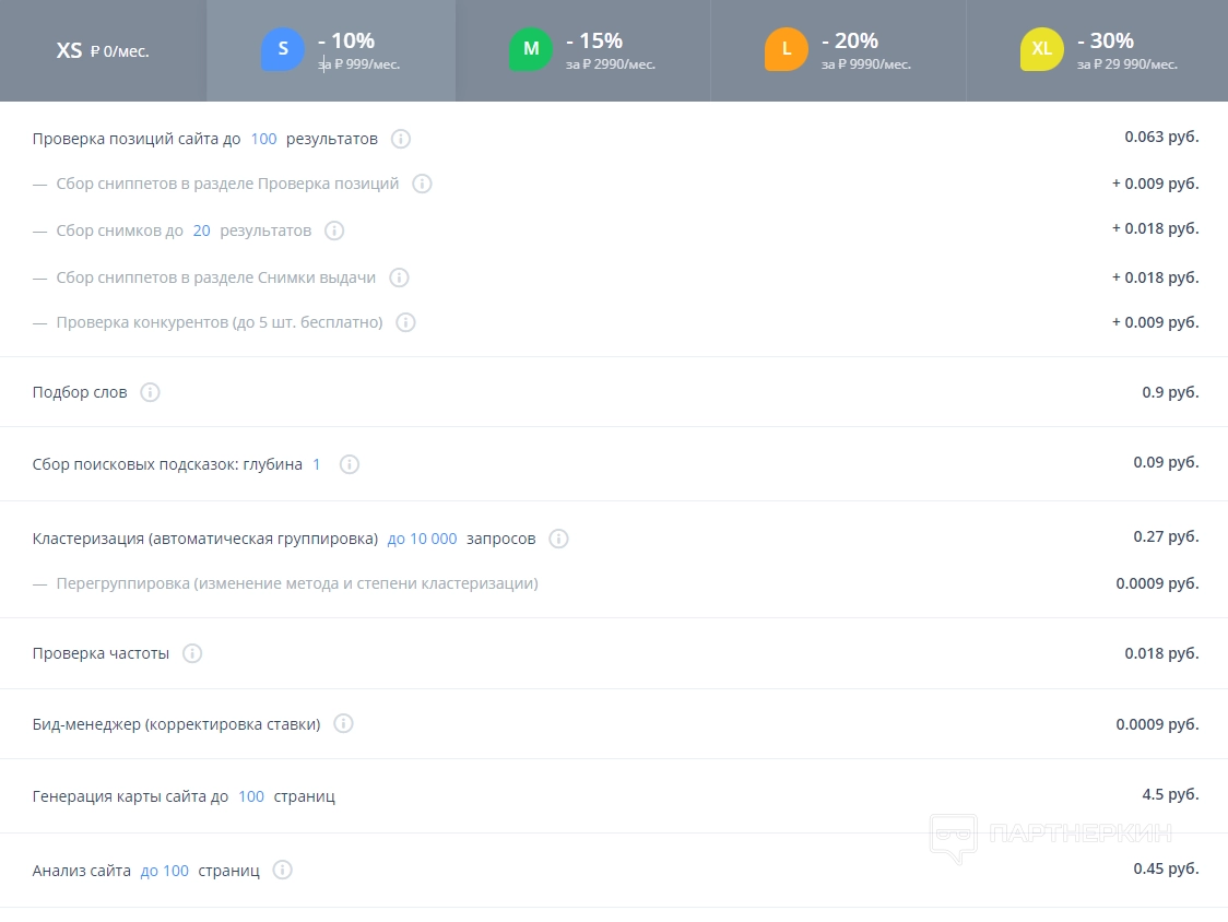 - фрагменты поисковой выдачи — от $0,0175 за 100 ключевых слов;