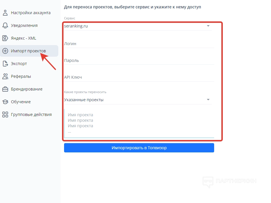 Еще один полезный блок — «Импорт проектов». С его помощью можно переносить проекты с других сервисов. Для этого нужно: