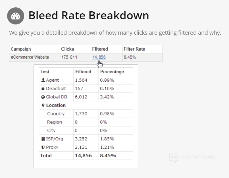 - Качественный анализ трафика — позволяет избежать возможных «подделок» от конкурентов в виде ботов, подозрительных IP-адресов и выбивающихся из общего числа пользователей.