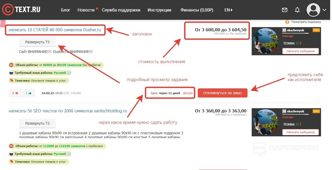 - Письменные работы на заказ. В данном разделе публикуются задания с крупным объемом символов – доклады, курсовые, рефераты, отчеты и т.д. Часто при этом требуется глубокое погружение в тему и знание специфических ниш.