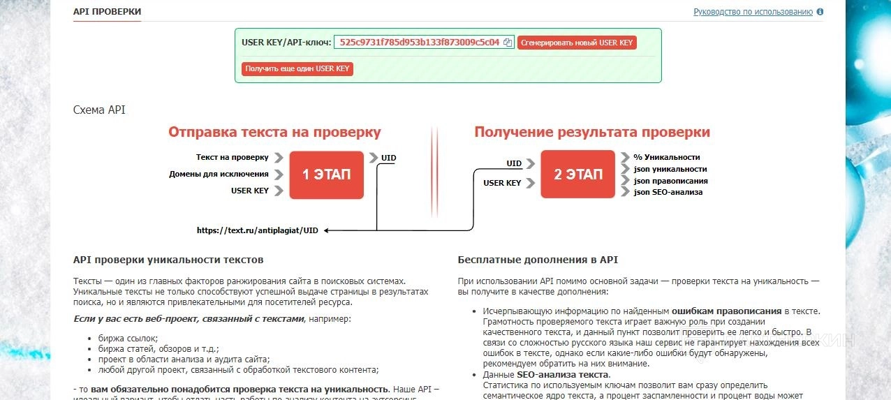 Этот инструмент поможет проверить веб-площадку на оригинальность пользователям, которые по какой-то причине не могут воспользоваться API. Для запуска достаточно указать главную страницу, и сервис автоматически спарсит все ссылки и выведет результат. В данном случае расходуются платные пакеты символов.
