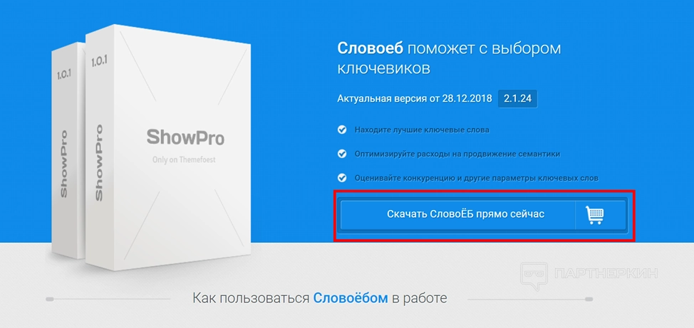 Slovoeb нужен для того, чтобы продвигать рекламу в Сети, писать СЕО-статьи и правильно подбирать ключевики. Программу используют, чтобы корпоративный сайт или онлайн-магазин вышел по нужной теме в топ выдачи.