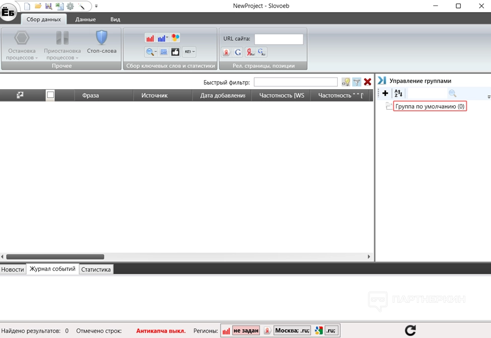 2. Закройте окно Стоп-слов и перейдите в раздел «Данные».