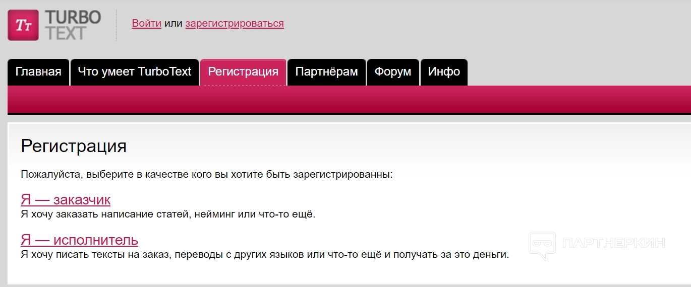 TurboText), в правом верхнем углу нажать «Регистрация».