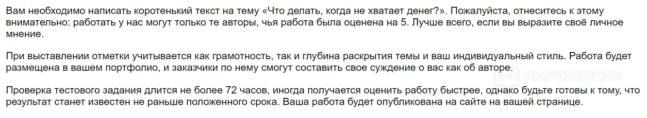 - Последний шаг для исполнителя для начала работы — написание текста. К сожалению, как такового технического задания не дается, а «коротенький» — это не показатель. На других платформах от подобной публикации задания на повышение квалификации можно отказаться.
