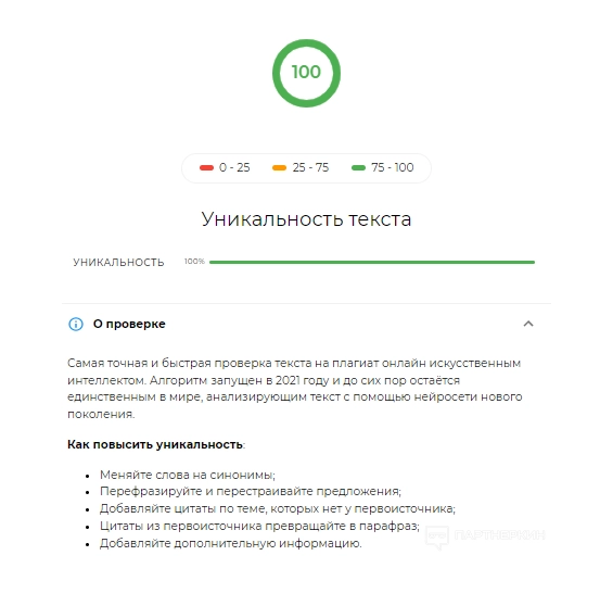 Так как работа копирайтера напрямую связана с текстами и их оригинальностью, необходимо постоянно быть в курсе данного показателя. У большей части бирж есть интегрированные сервисы проверки, как и у