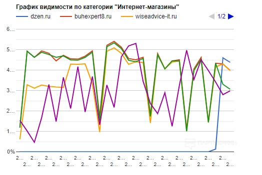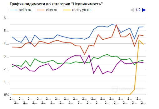 Рейтинг по видимости . Функция определяет лидеров поиска по всем популярным тематикам. Как выглядит график видимости по категории «Недвижимость».