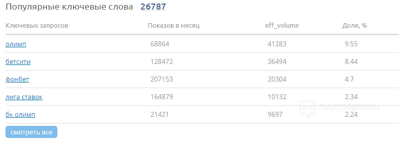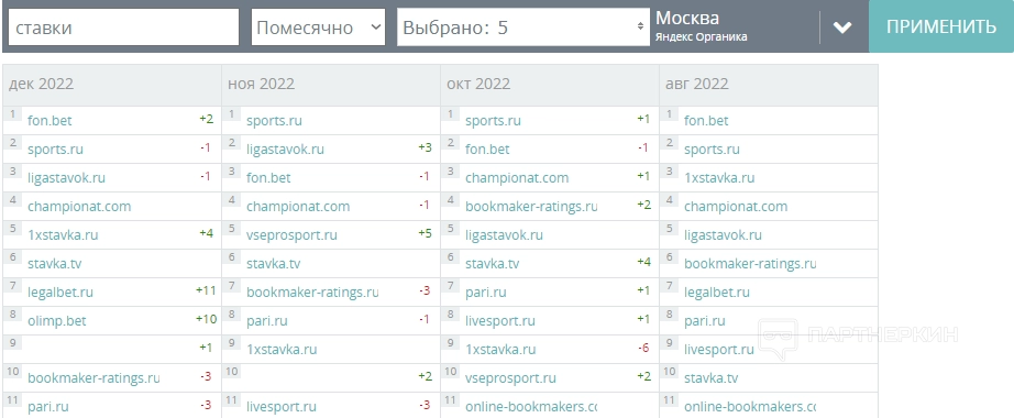 В качестве примера использовалось слово «ставки». Результаты следующие: