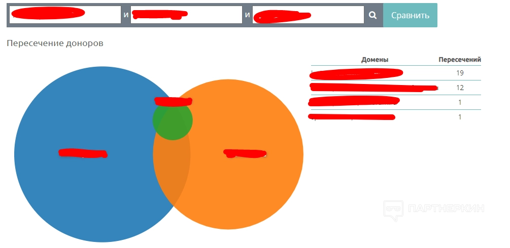 Сравнение доноров с конкурентами . Инструмент анализирует размер ссылочной массы сайтов конкурентов и определяет их пересекающиеся доноры ссылок. Использование этой функции поможет SEO-специалистам сформировать стратегию по наращиванию ссылочной массы продвигаемому сайту.
