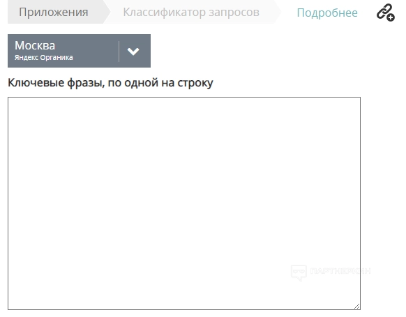 Классификатор запросов. Пользователь вписывает ключевые фразы в поле и ждет результаты. Сервис отображает следующие метрики: