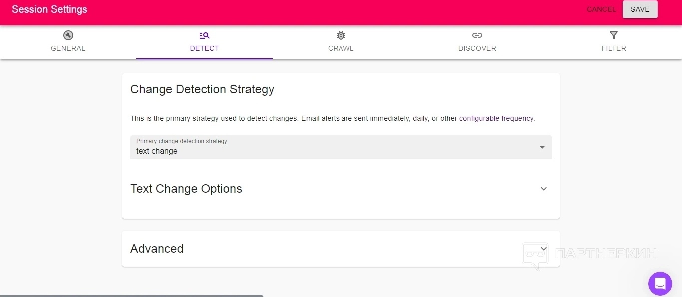 - Стратегия обнаружения изменений — настройки режима проверки в зависимости от выбранного. Можно настроить проверку изменений текста, HTML, визуал и многое другое.