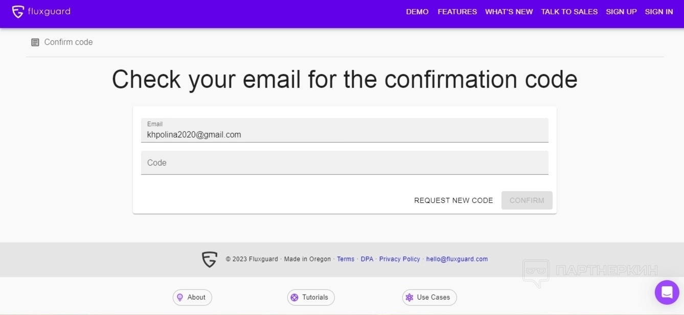 Затем для подтверждения регистрации необходимо будет ввести идентификационный код доступа, который автоматически отправляется на указанный почтовый ящик.