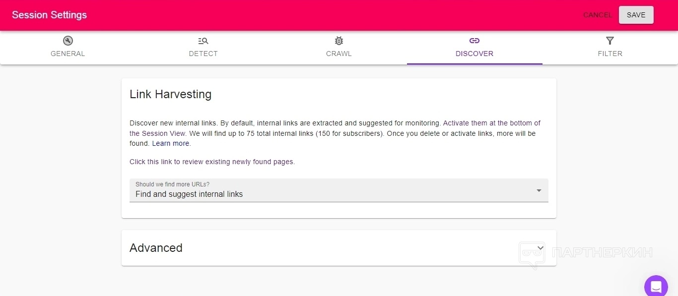 - Сбор ссылок — настройка мониторинга и сбора найденных внутренних ссылок на веб-ресурсе. Для бесплатного тарифа можно найти до 75 ссылок, для владельцев платного тарифа — до 150.
