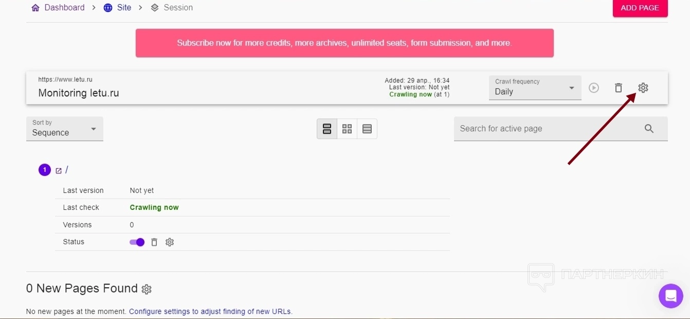 Так выглядит карточка сайта, запущенного в проверку с автоматически настроенными параметрами от самого сервиса. Однако их можно изменить. Для этого находим значок шестеренки и нажимаем на нее.