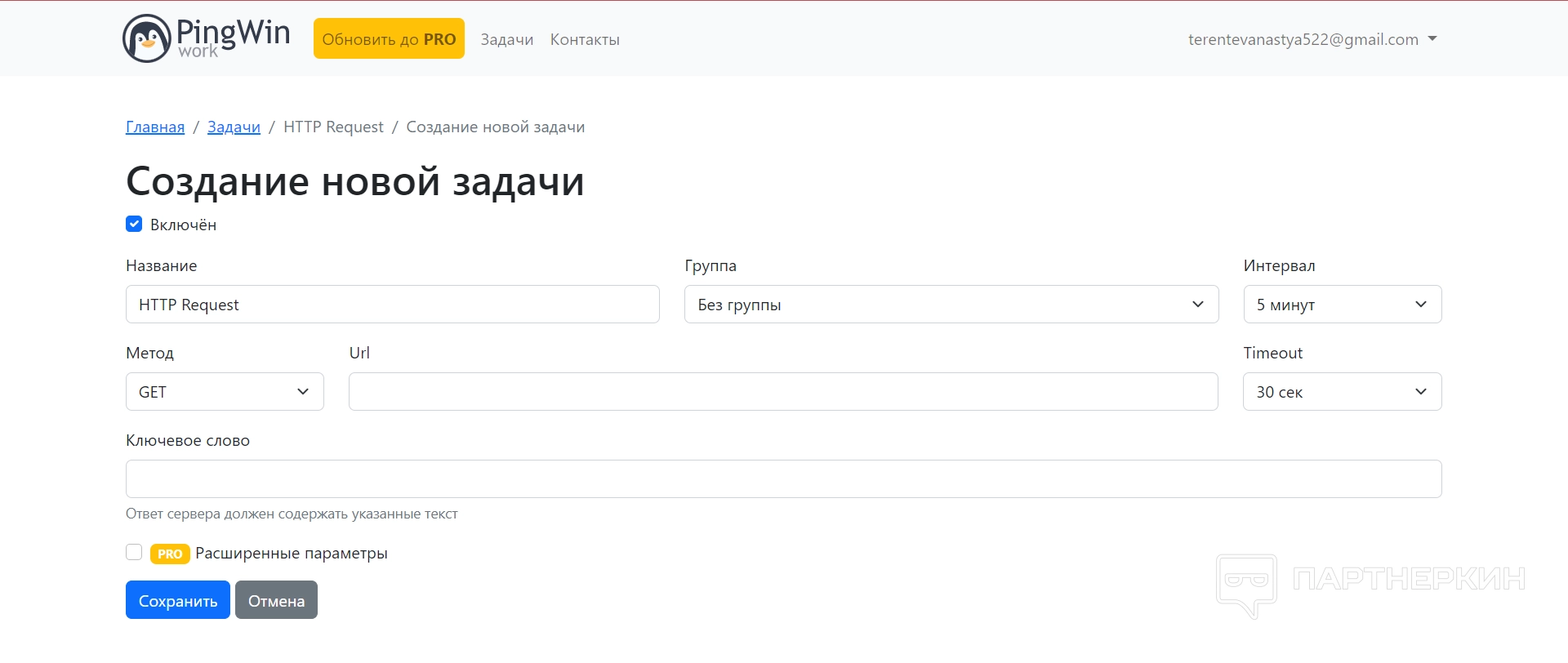 Как видно из скрина, большинство услуг премиальные — доступен при базовой подписке только мониторинг сайта, пинга и порта. В зависимости от пожеланий, можно выбрать любую задачу и начать ее оформление. В случае с сайтом, придется указать такие данные, как группа по необходимости, метод проверки, урл сайта, интервал проверок и тайм-аут, а также ключевое слово.