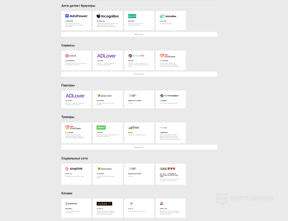 Что касается раздела «Партнеры», здесь можно найти разные сервисы, с которыми сотрудничает