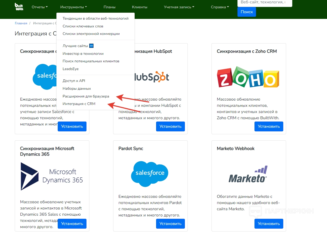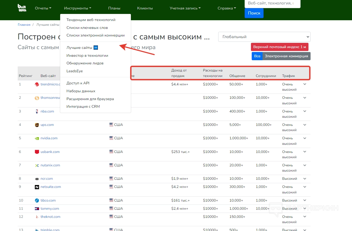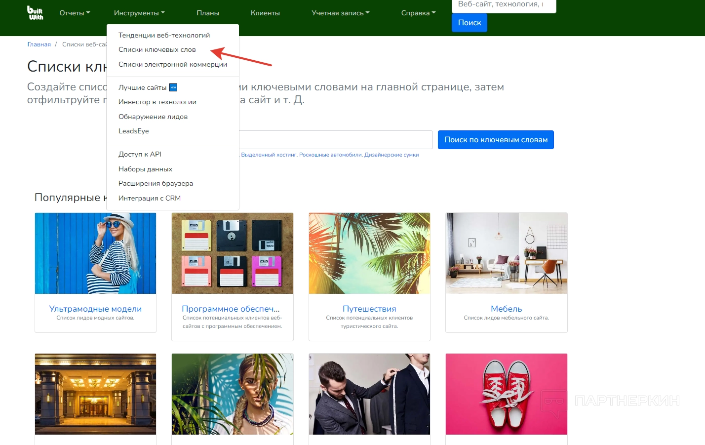 - инструменты — в этом разделе содержаться списки ключей и сайтов, разные расширения и инструменты для анализа сайтов и технологий;