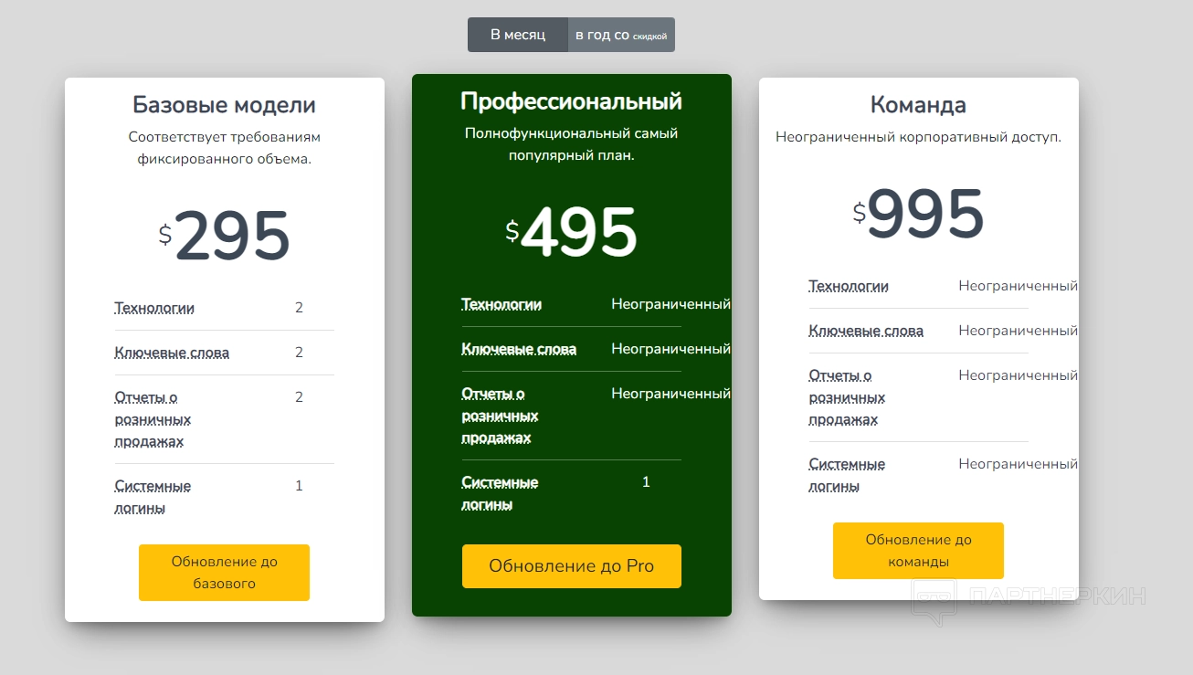 В каждый тариф включена неограниченная загрузка отчетов и данные с более чем 673 млн. сайтов.