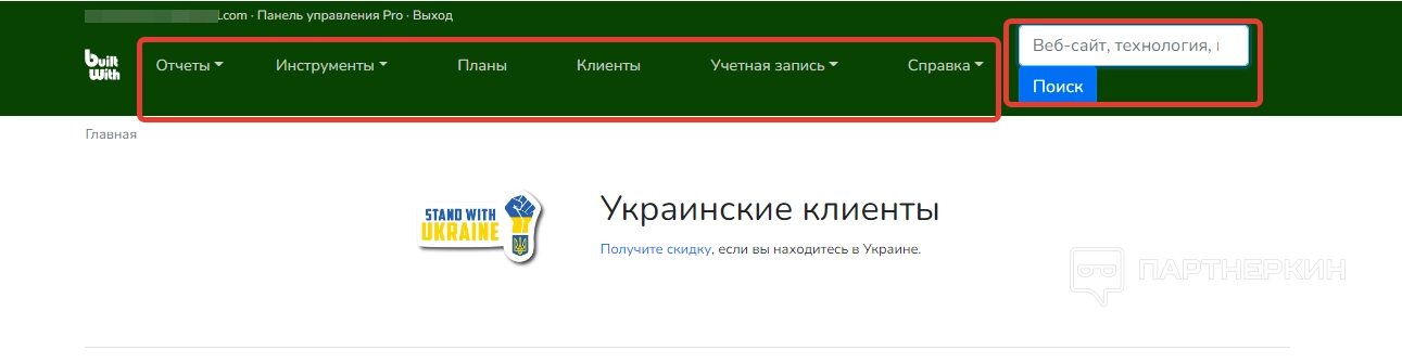 Что касается поисковой системы, она нужна для того, чтобы искать те сайты или технологии, которые пользователь хочет проанализировать с помощью сервиса