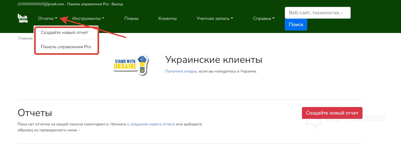 В этом разделе мы создаем отчеты. Чтобы создать отчет, открываем соответствующий раздел и жмем «Создать новый отчет». Обращаем внимание, что ниже есть вкладка «Pro панель мониторинга», которая будет доступна после приобретения одного из платных тарифов.