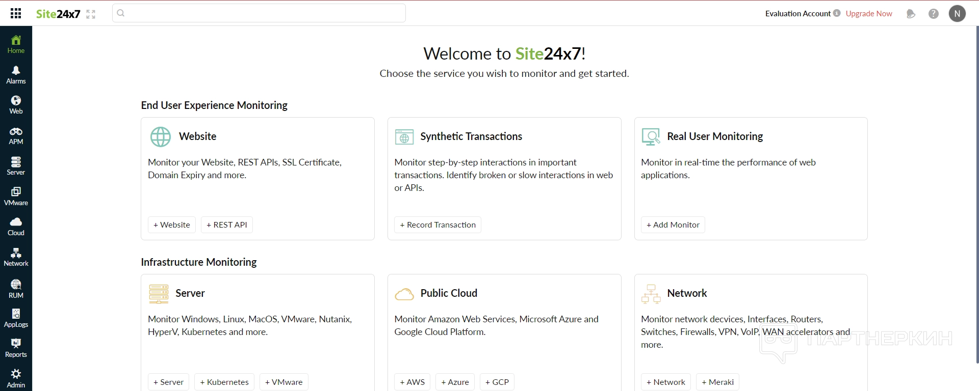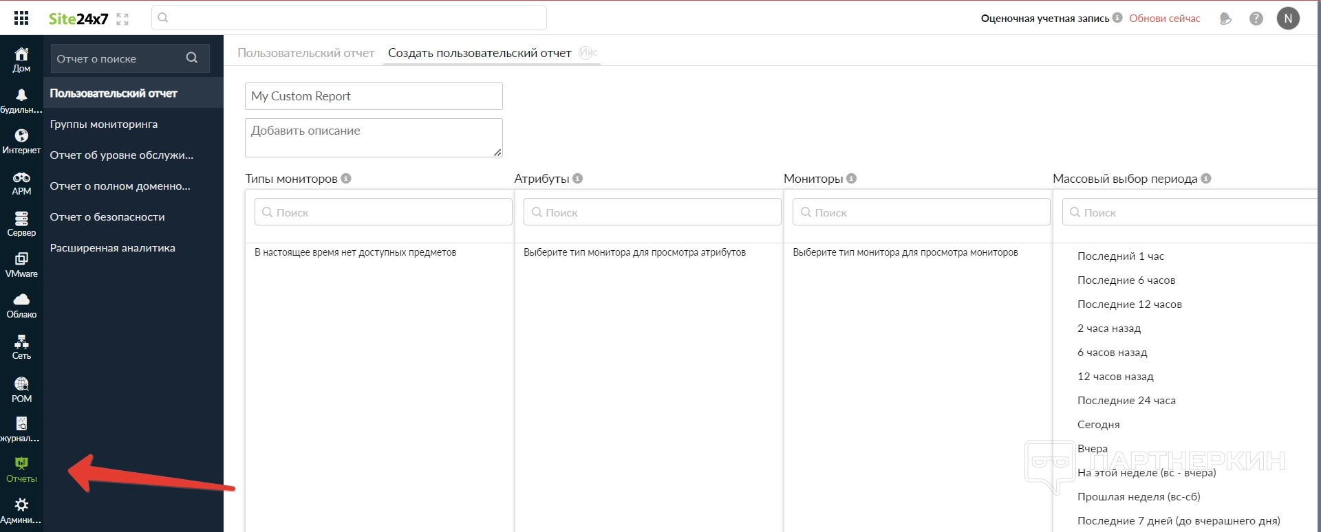 Часть касается именно функций мониторинга — это мониторинг сервера, сети или облачный мониторинг. Но также здесь в самом низу есть отчеты, чтобы просматривать истории проверок.