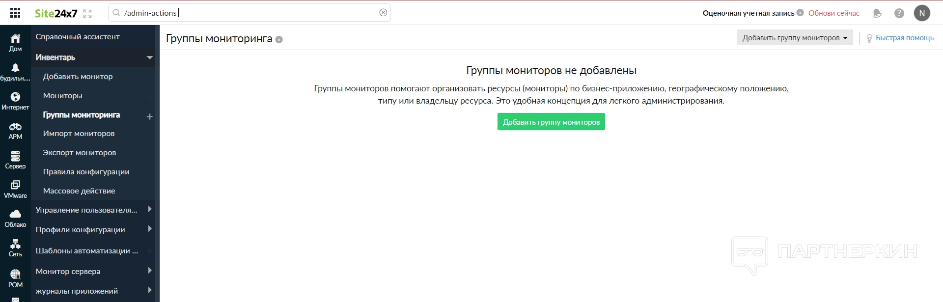 - группы мониторинга — для удобства можно объединять различные проверки по типу в группы, чтобы удобно их искать, и все они будут находится в этом разделе;