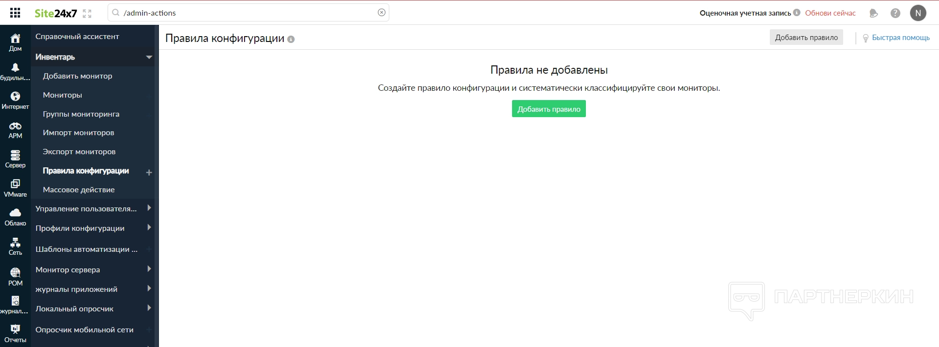 - правила конфигурации — можно заранее создавать правила конфигурации, чтобы потом их быстро добавлять при настройке нового мониторинга;