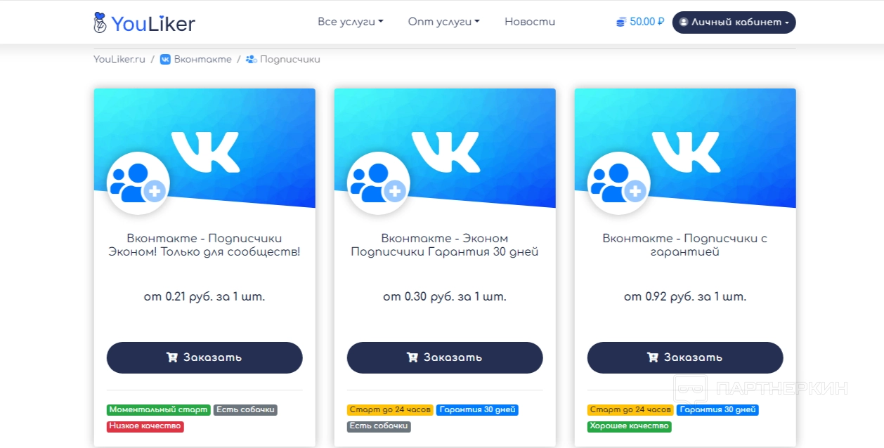 - лайки – от 22 коп.;