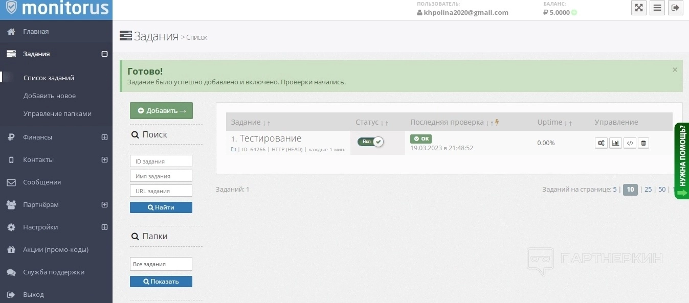 После того, как задача создана, она отображается в списке. Ее можно остановить, удалить, изменить настройки, посмотреть статистику и так далее.