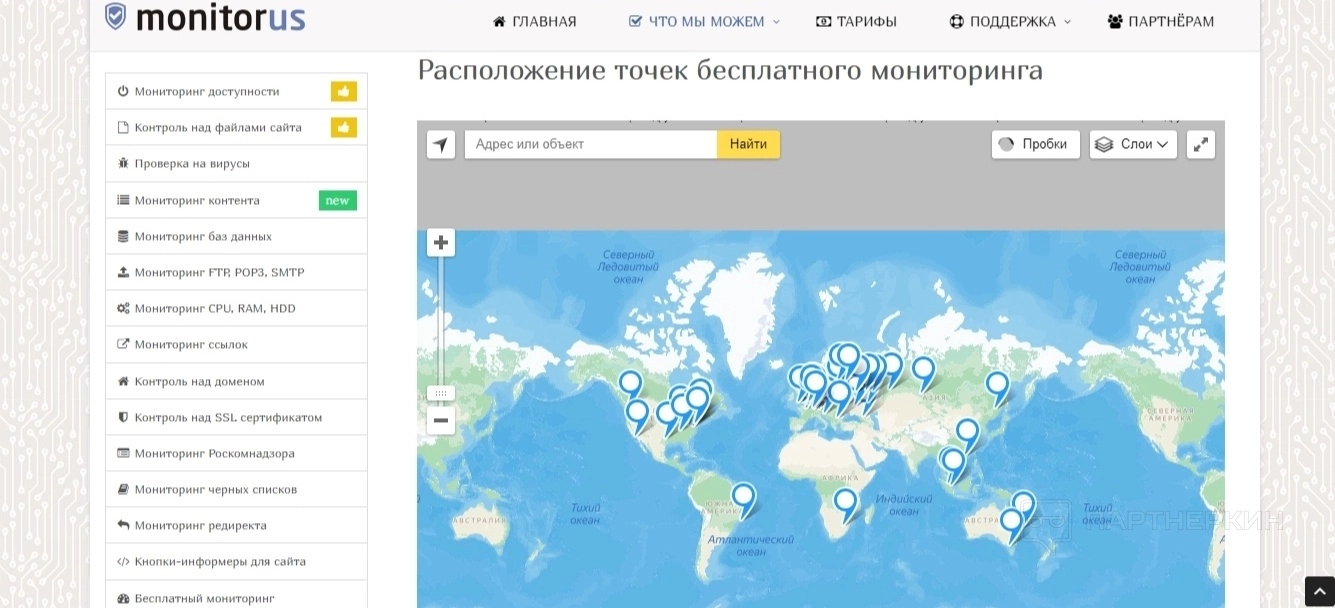 Проверка запрашиваемых сайтов, серверов и ресурсов происходит благодаря большому счету точек мониторинга, которые находятся по всему миру. Среди них есть западные направления, страны СНГ, Европы, Азии и так далее.