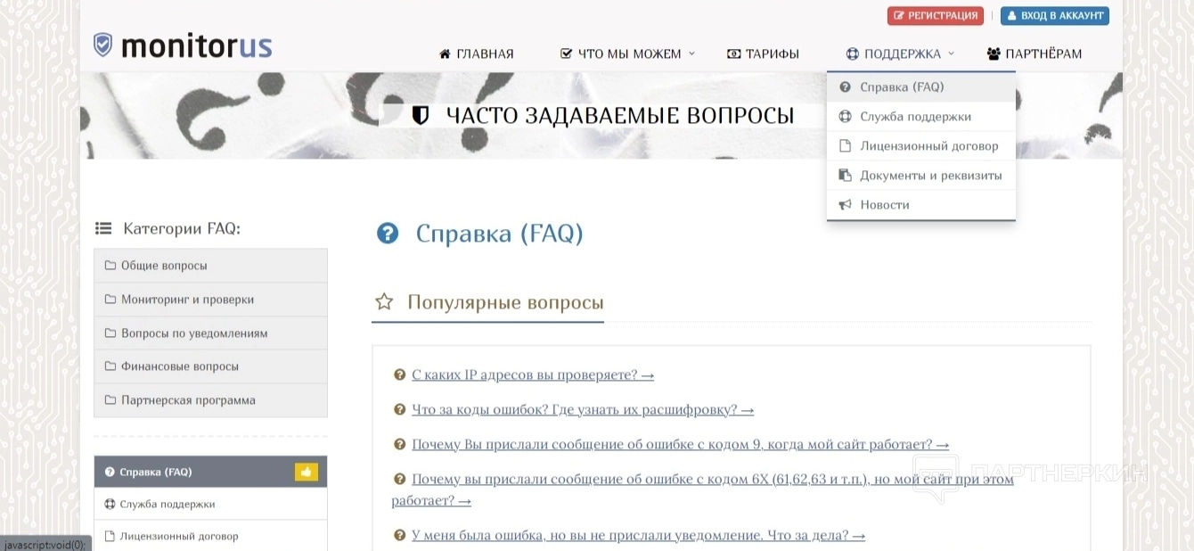 Если у пользователя возник вопрос или он хочет дополнительно познакомиться с работой сервиса, для него есть специальный раздел Поддержка. В нем можно найти ответы на часто задаваемые вопросы, связаться с техподдержкой в личном обращении, а также ознакомиться с последними новостями платформы и лицензионными документами, реквизитами.