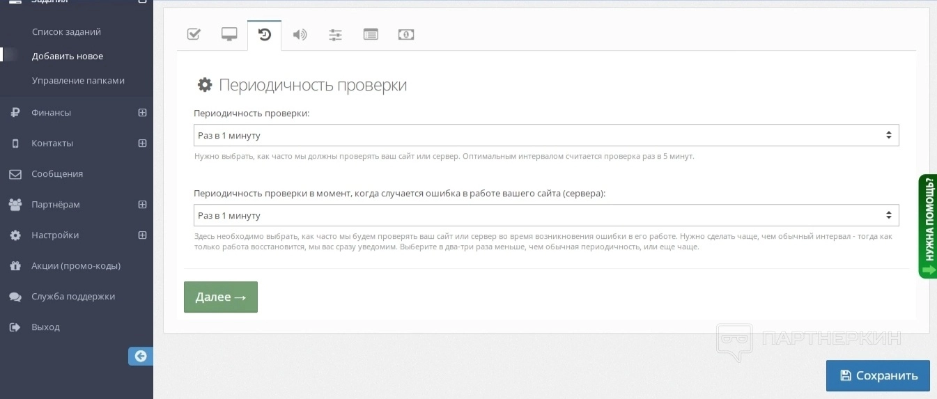 Третий этап — настройка периодичности проверок. Минимальный показатель — от 1 минуты.