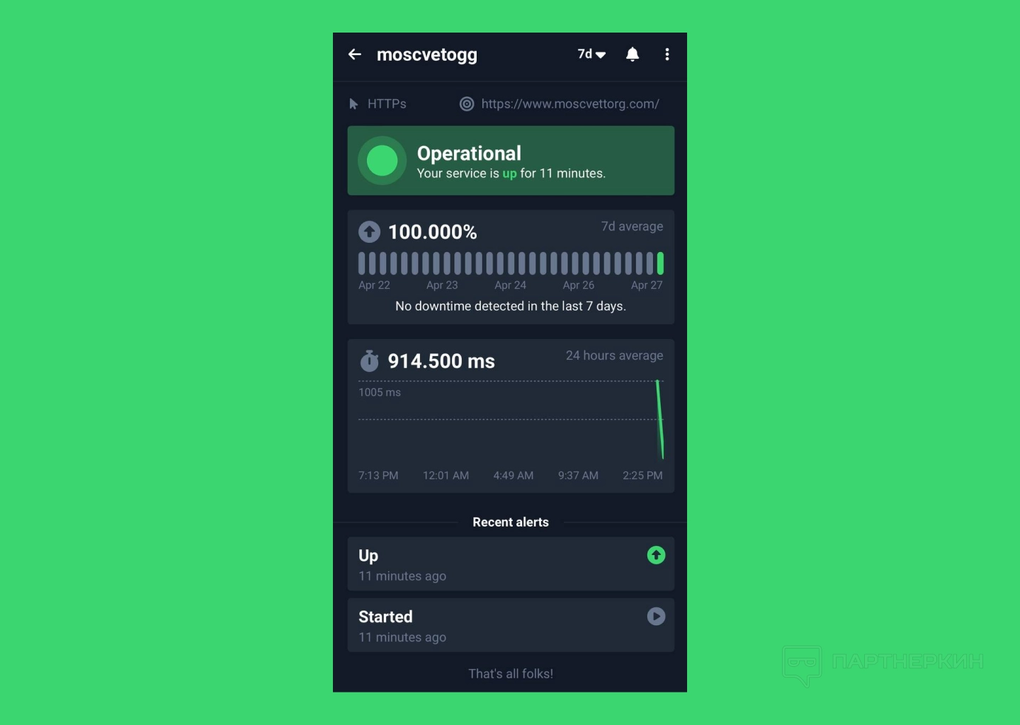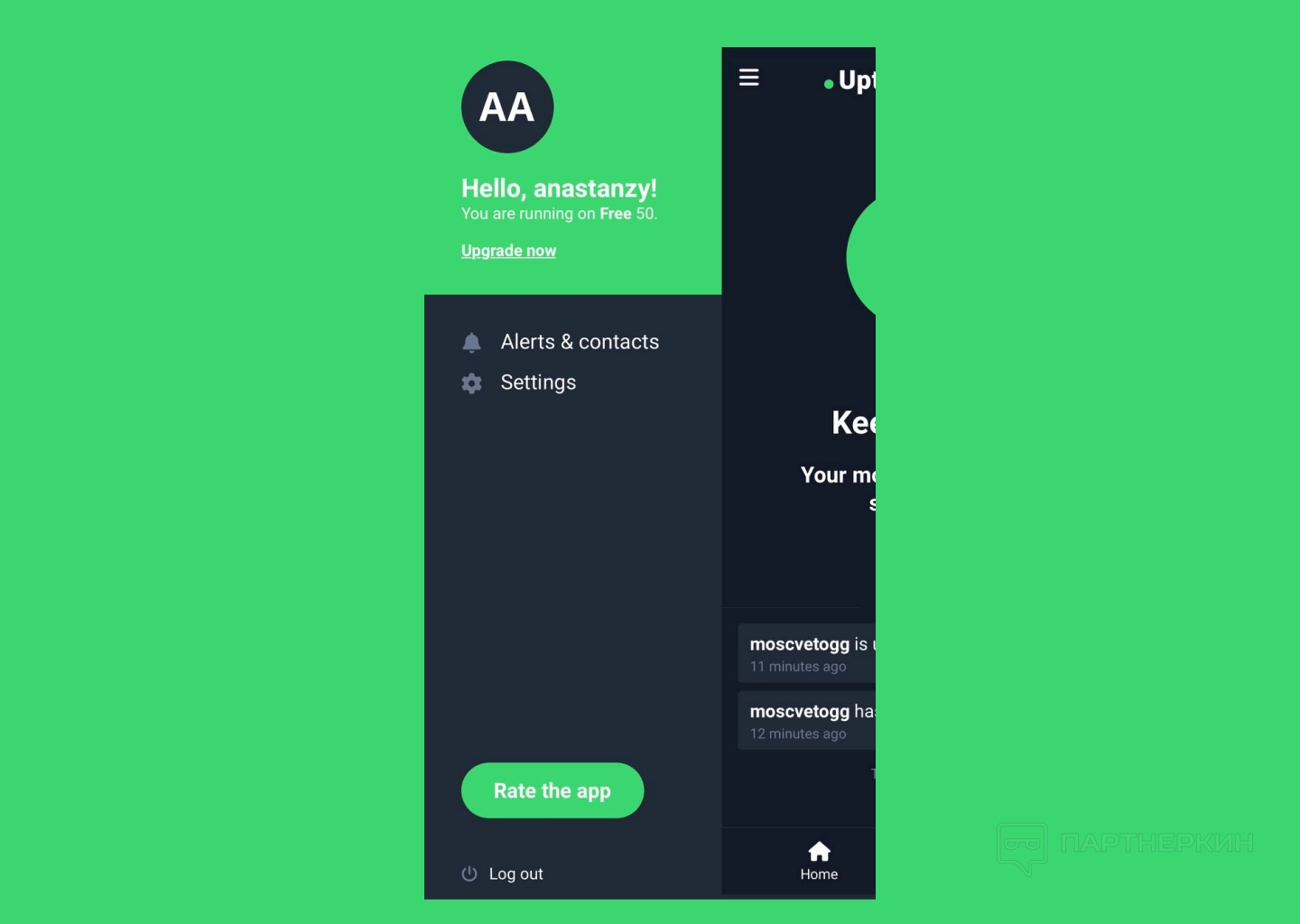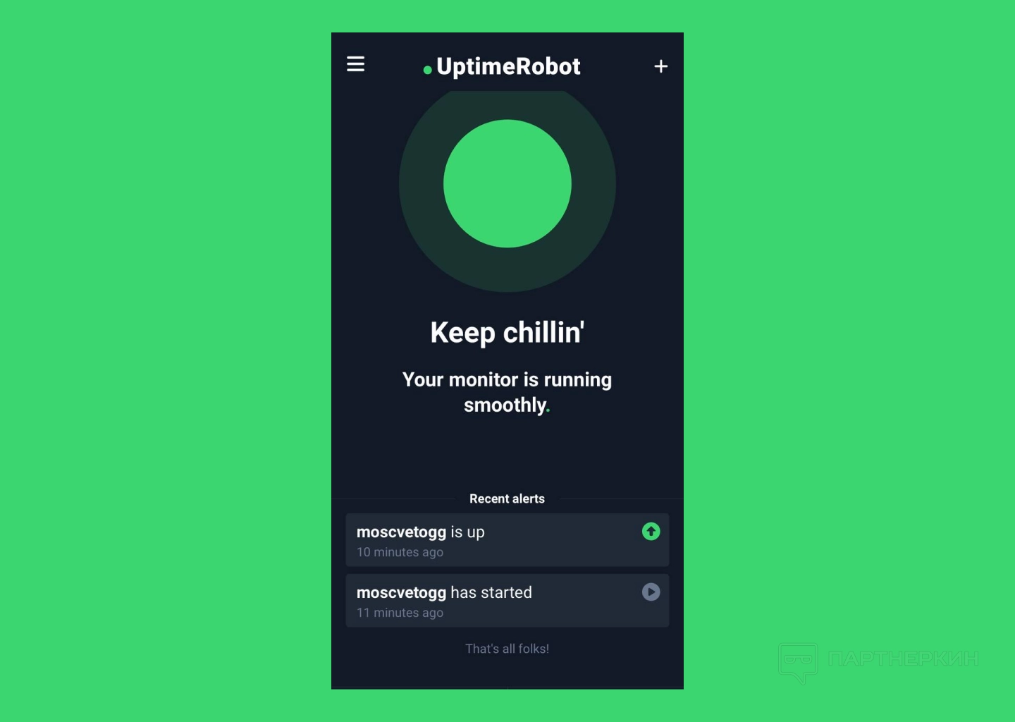 Мобильная версия приложения работает практически идентично — отличается только само управление. Для начала нужно войти в приложение, после чего все активные мониторы будут отображаться на главном экране, а для проведения очередной проверки нужно просто тапнуть по зеленому кругу в центре экрана.