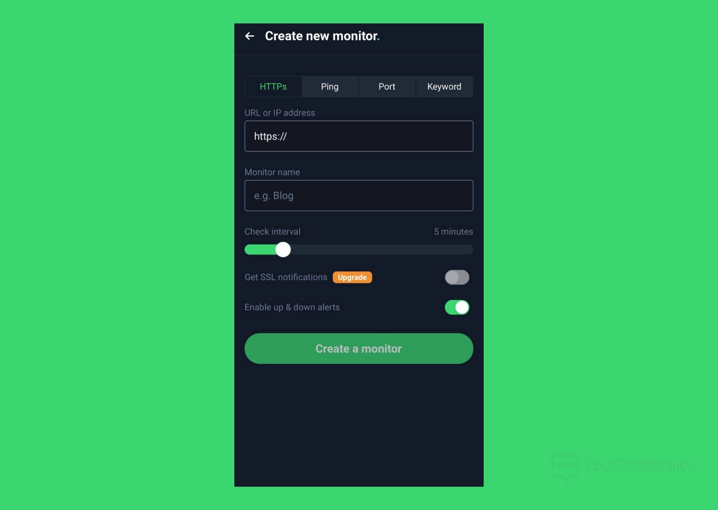Чтобы добавить новый монитор, нужно тапнуть по плюсу и выбрать тип монитора — после этого все данные указываются по той же логике, что и на десктопной версии.