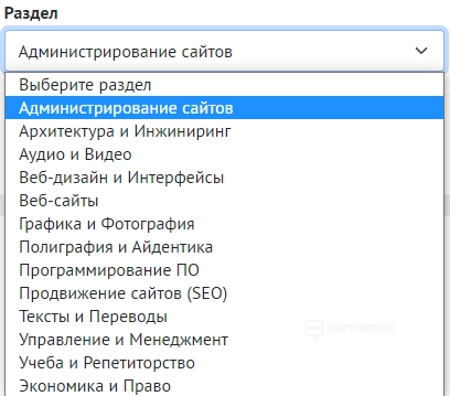 - Категория. Необходимо указать один из двух вариантов — «Определить автоматически» и «Я хочу указать параметр». При выборе второго соединения заказчику необходимо выбрать раздел и определить характеристики. Правильный выбор категории привлекает наибольшее количество исполнителей, специализирующихся в данной области.