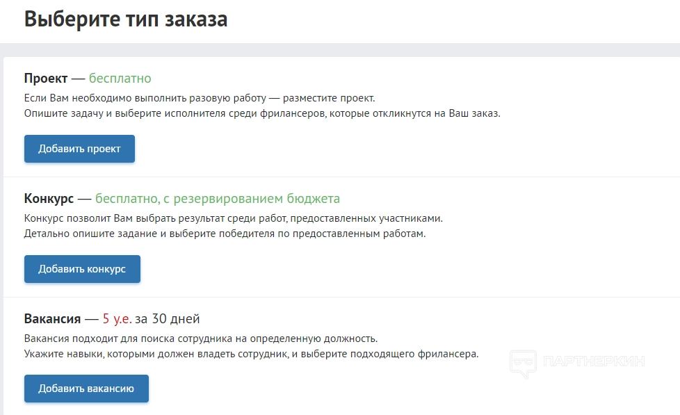Все опубликованные заказы доступны в трех разделах: «Проекты», «Вакансии», «Конкурсы». Как выбрать задание: