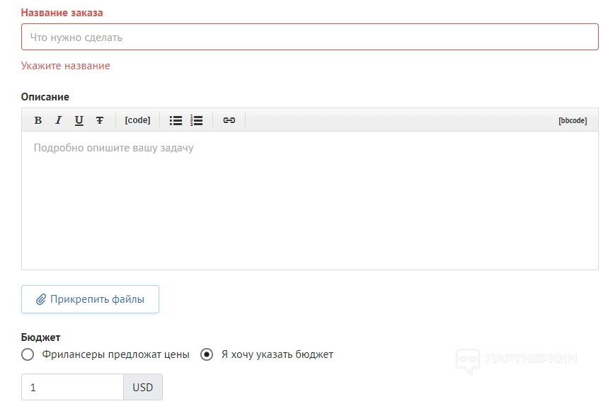 - Бюджет. Заказчик может установить один из двух фильтров — «Фрилансеры предложат цены» или «Я хочу указать бюджет».