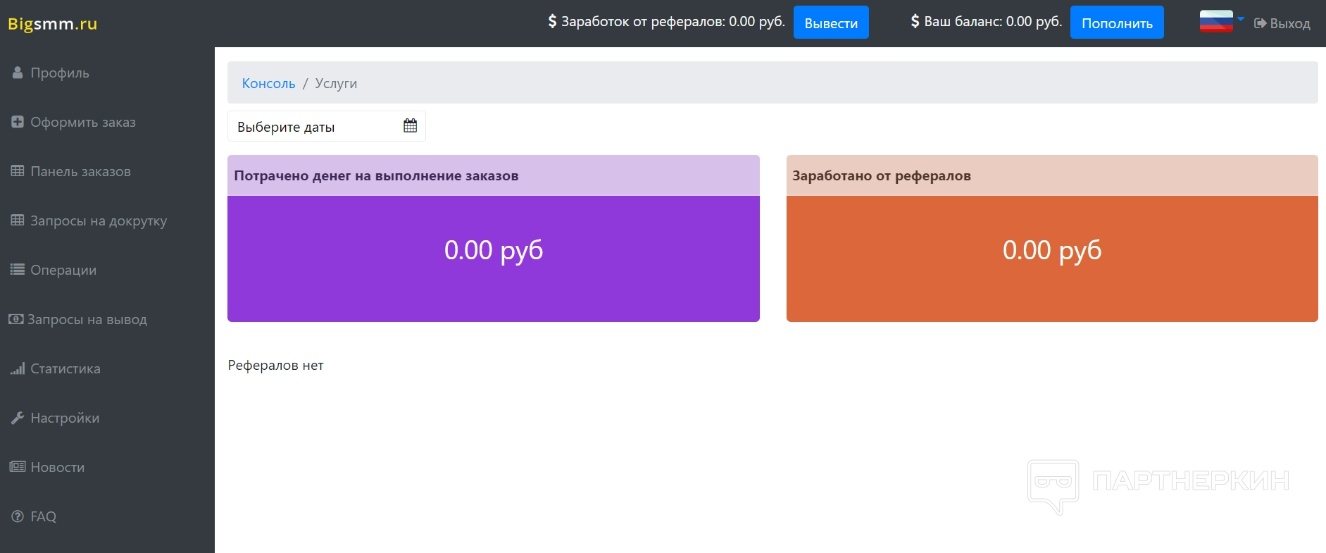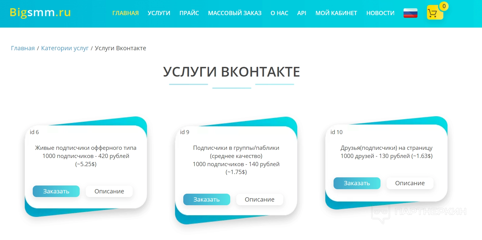 - возможность создавать массовые заказы — при необходимости, можно разом запустить все нужные услуги и не тратить время.