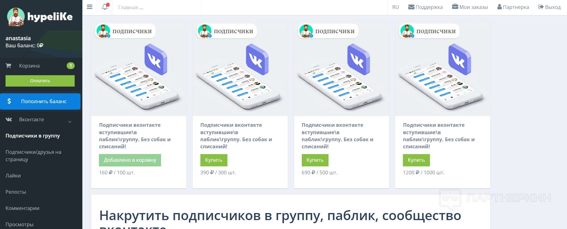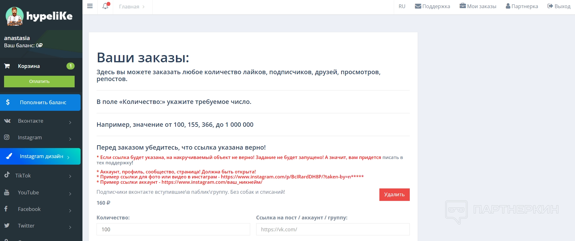 Заказ переместится в корзину, где вам нужно указать количество активности и ссылку на ресурс. Сразу после оплаты начнется процесс накрутки.