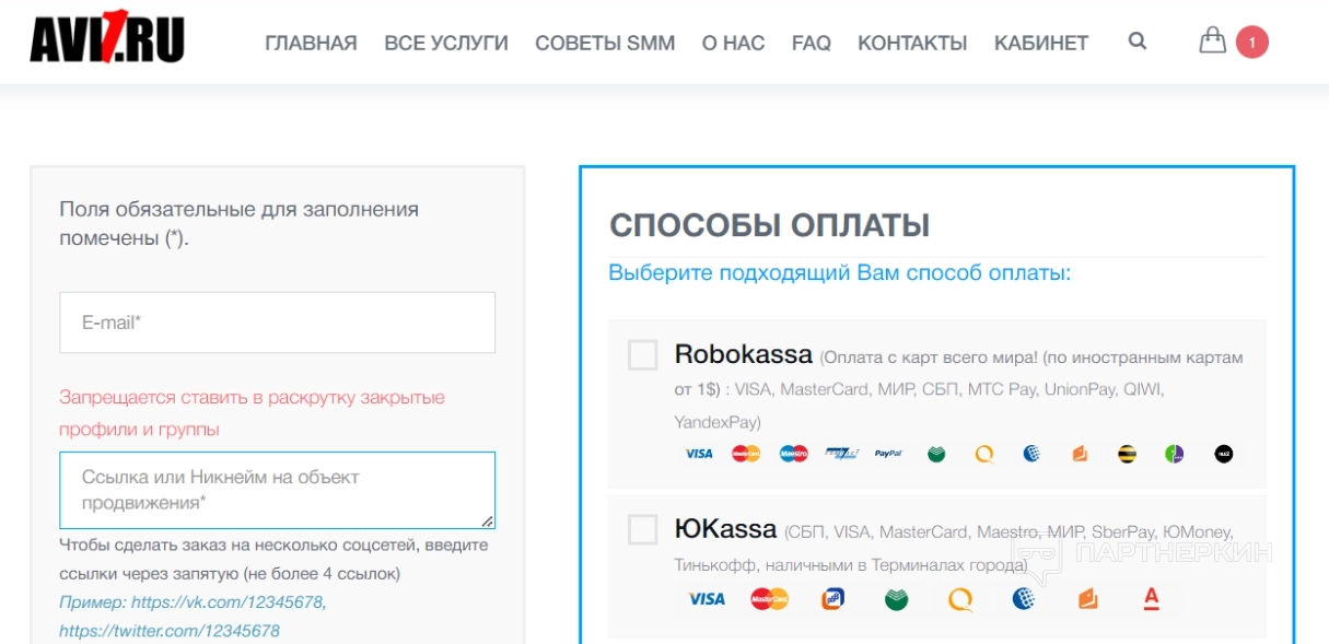 Оплата услуг осуществляется через удобные платежные системы, что делает использование сервиса максимально удобным и безопасным — без проблем оплачивается из России. Например, можно оплатить российскими картами или через ЮMoney или QIWI.