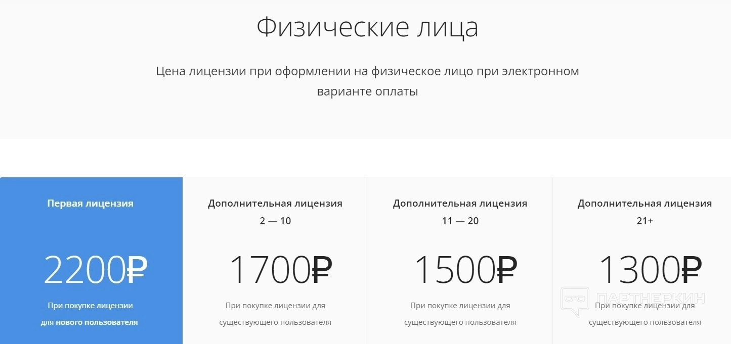 Стоимость лицензии для физического лица — 2 200 руб. на 1 компьютер.