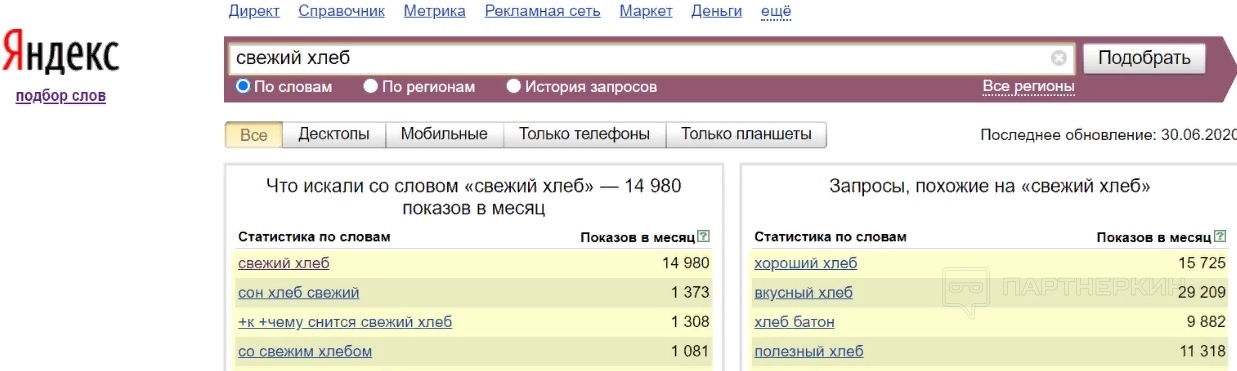 Есть возможность задать тип баз данных, по которой сервис будет выдавать статистику. Например, можно собирать фразы без ограничений по типу устройств. Можно задать таргетинг, в том числе настройки региональности. Также поддерживается использование минус-слов, что позволит сократить объем выдачи. Можно собирать слова из левой и из правой колонок Вордстата.