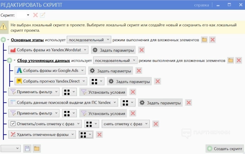 Сбор фраз расширяет семантическое ядро. Запросы и их идеи собираются из внешних источников. Чтобы начать сбор фраз, нужно сформировать задание: