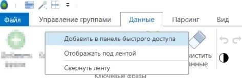 Часто используемые опции можно закреплять на панели быстрого доступа. Чтобы добавить опцию, нужно сначала вызвать контекстное меню, выбрать пункт «Добавить».