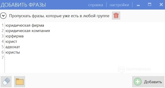 • «Парсинг». С помощью инструментов этого раздела можно собирать фразы из внешних сервисов.