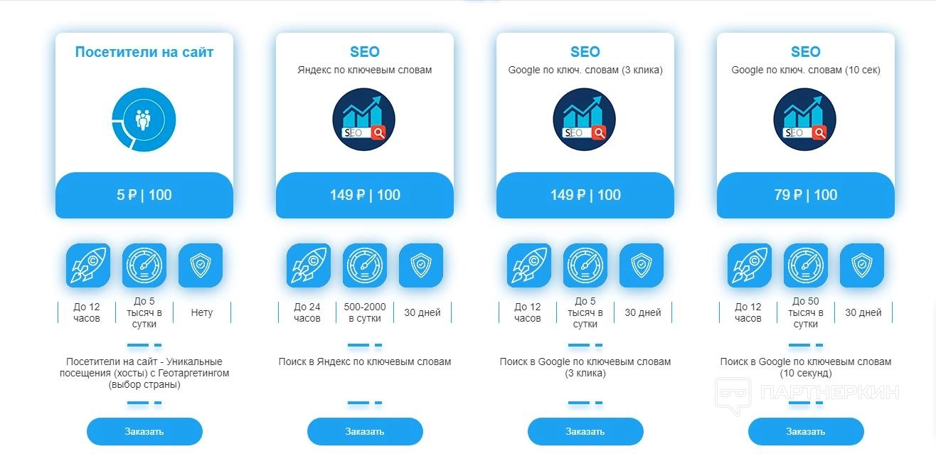 Список услуг продвижения также весьма обширны – на платформе можно заказать практически любое действие, доступное на выбранной площадке. Перечислим некоторые возможности системы.