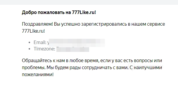 Стоит отметить, что на указанную почту все равно придет письмо с поздравлением об успешной регистрации. В нем будет храниться логин и выбранный часовой пояс. Учтите, что письмо может попасть в папку «Спам».