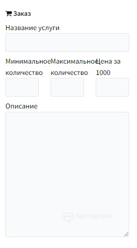 После этого нужно вставить ссылку на страницу и указать количество заказов. Также нужно указать название ордера, минимальное/максимальное количество и стоимость услуги. При необходимости можно указать описание задания.