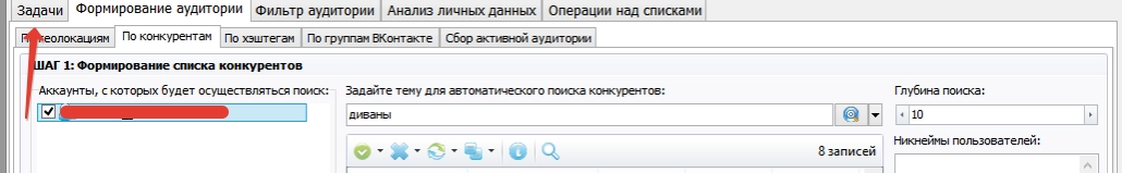- формирование аудитории по конкурентам, группам Вконтакте, хештегам;